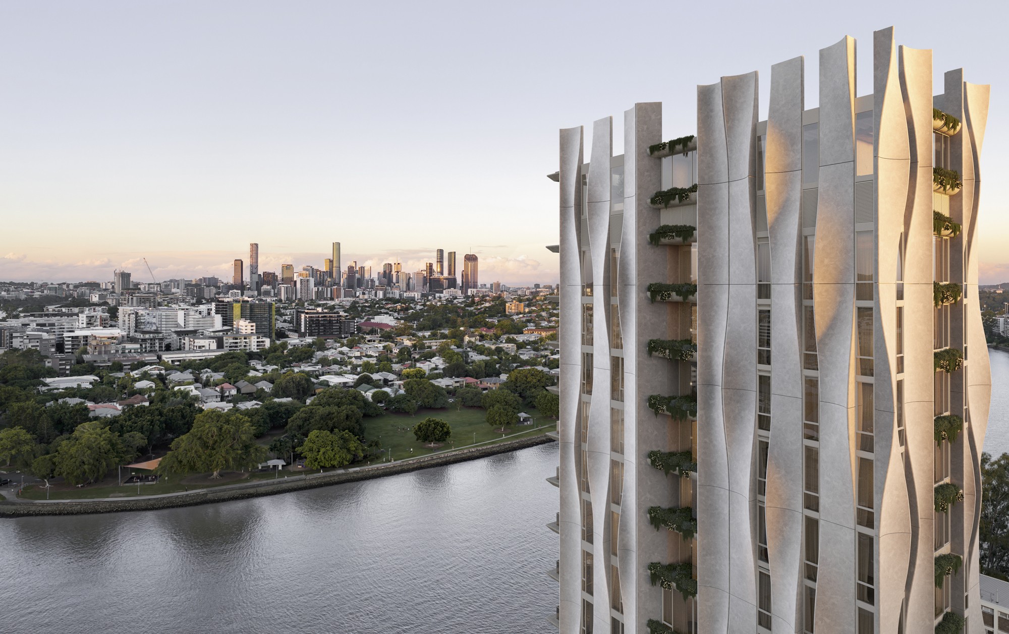 Rising above the Brisbane River at St Lucia, it is a tower of sculpted form and quiet authority - designed not to announce itself, but to belong. To the river below it. To the sky above it. To the suburb thathas long resisted anything less than the exceptional.